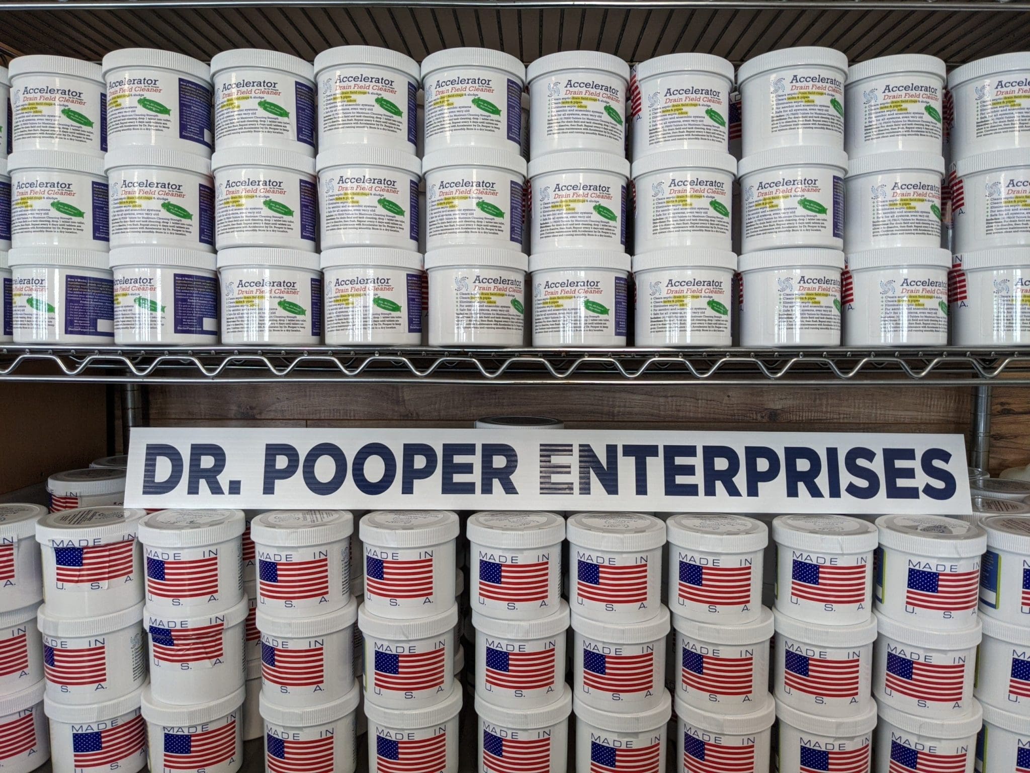 Dr. Pooper Enterprises develops and produces all-natural septic system cleaning products and wastewater treatments based on our Accelerator by Dr. Pooper(TM) bio-accelerator formula. Initially created for use in municipal systems and livestock lagoons (among other commercial and industrial applications), one of our partners adjusted the formula to make it work for his own septic system and ended up with a product that clears septic systems and is even more effective for all of those commercial and industrial uses too.